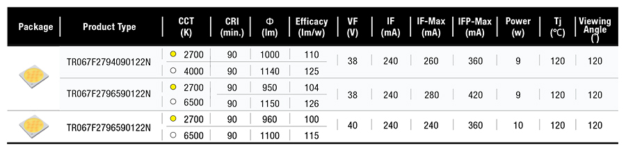 • 不同功率版本,單顆實現(xiàn)400-700流明光輸出