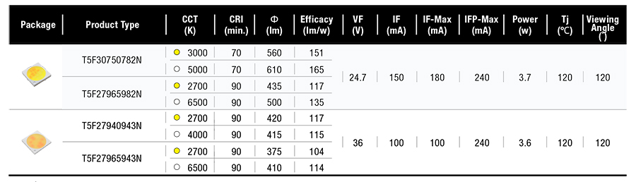 • 高可靠性EMC封裝產(chǎn)品,完美平衡光效,可靠性,照明質(zhì)量及綜合成本優(yōu)勢